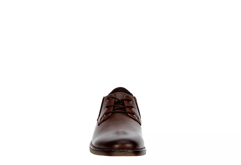 Dress up in Dad’s style in the Deer Stags Matthew Jr boys’ oxford. With a faux leather upper featuring an embossed detail for extra style, this lace-up shoe is modern to complement his look. The EVA insole with Memory Foam cushions every step while the lightweight outsole offers durability.
